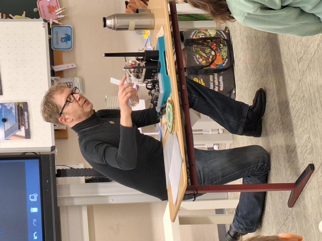 Ein echtes Highlight war das Mini-Dampfkraftwerk im Klassenzimmer. Durch das Anzünden eines Grillanzünders wurde Wasser in Dampf verwandelt, der eine kleine Turbine antrieb und schließlich eine Glühbirne zum Leuchten brachte. Staunen garantiert!